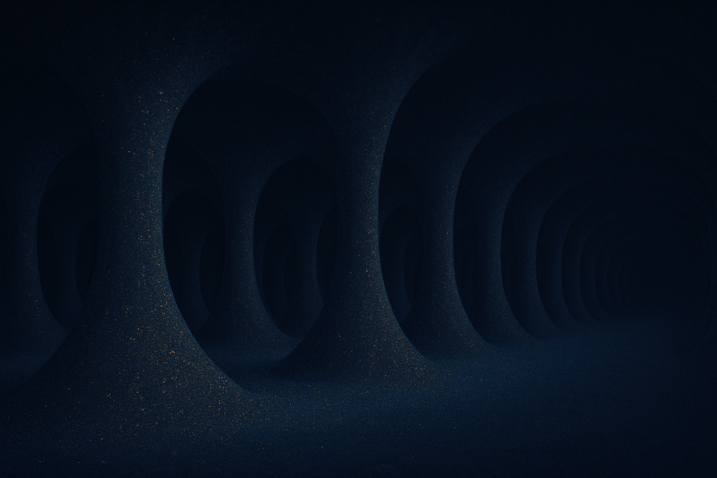 Ušli su u potpun mrak i trebao je trenutak da se svjetlost počne polako buditi. Prvo se pojavila pod njihovim nogama, blago zelenkasta, da bi se proširila, granajući se od njih zvjezdasto u pravilnim razmacima. Nije bila oštra poput zrake, već je, blago se razlijevajući, treperavo slijedila pravocrtnu putanju niza za nizom odvojaka koje su, činilo mu se, sačinjavale neke vrste tornjeva. Ta neobična svjetlost uspinjala se njima i ravno u vis, i kružeći i spiralno se penjući, da bi zgasnula u nekoj Utuu neodredivoj visini. Svako toliko moglo se vidjeti da se proteže još više, prateći ljevkaste oblike kojima su se neki od tornjeva proširivali dotičući svod i mjestimično se čak granajući po njemu.