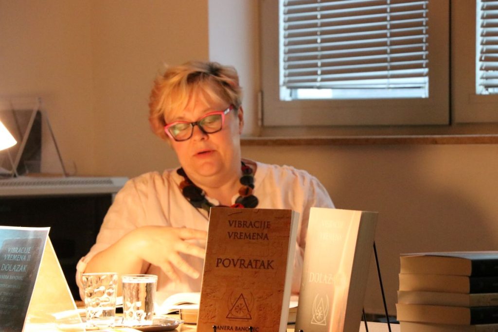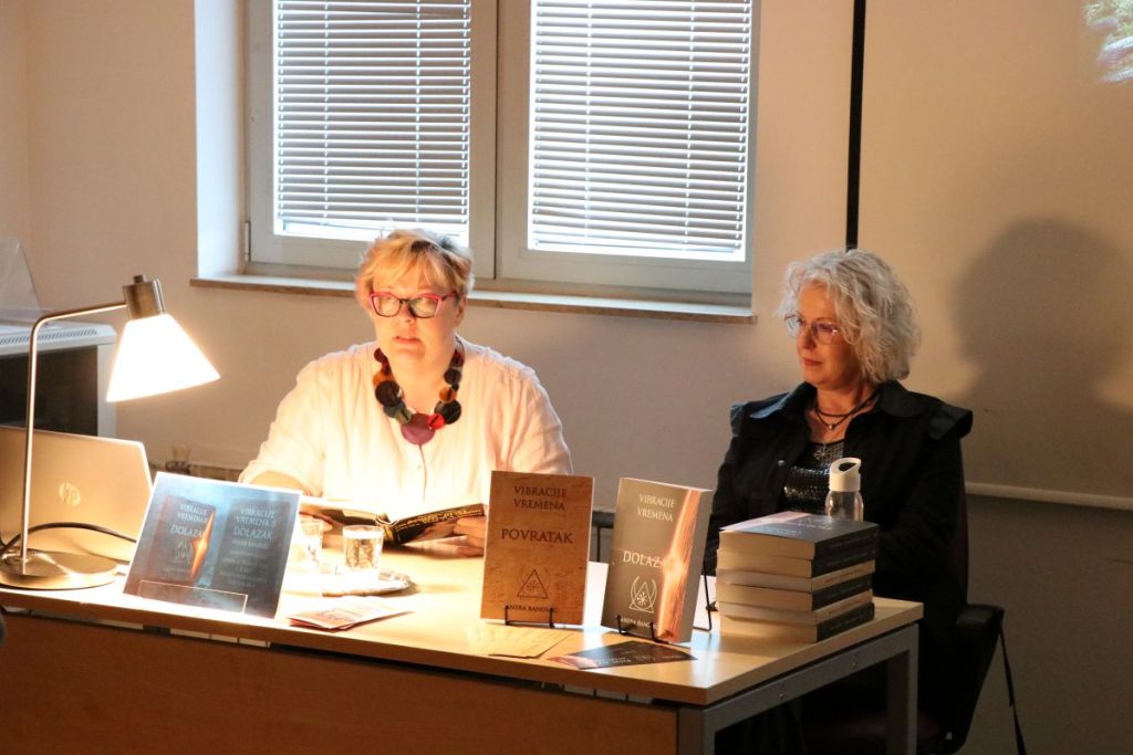Prošli sam tjedan imala veliko zadovoljstvo predstaviti drugi roman iz serijala Vibracije vremena u Knjižnici August Cesarec u Zagrebu. Pred punom dvoranom Ira Tuzlančić , viša knjižničarka, na svoj nenadmašni način čitala je isječke iz Dolaska, uvlačeći posjetitelje duboko u radnju.